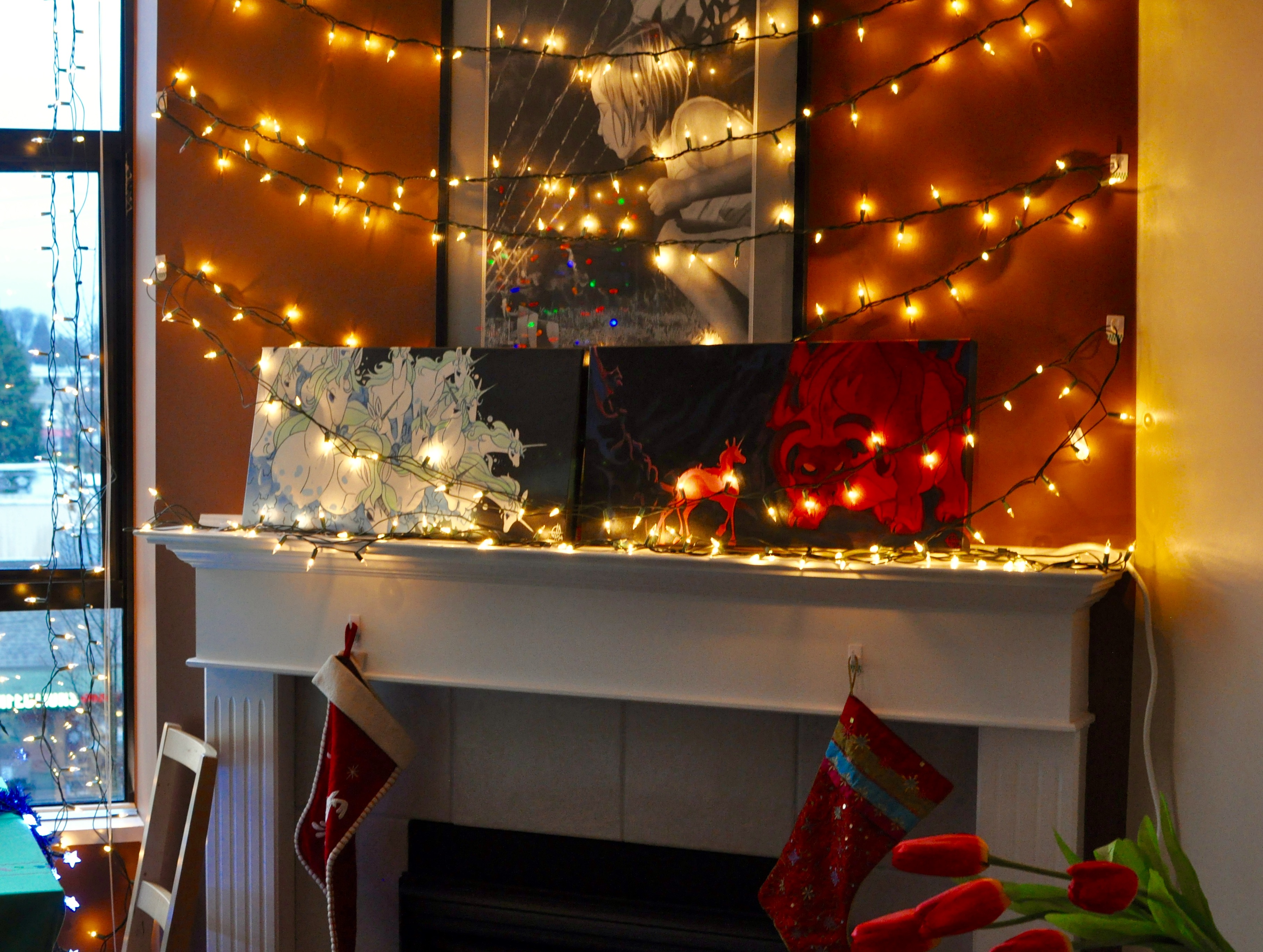 London, Ontario is a very Victorian town, the entire downtown core is made up of old brick buildings that look as though they were made to be decorated for Christmas. This was before icicle lights, blinking lights, and any other lights other than the solid colourful or white lights that were pulled out of storage once a year to adorn eaves, bushes, and porches. We went to a family friend’s house after the skating, walking over after the skating had finished up. I remember my sister and I ate pancakes for dinner, I think the adults probably had something else, and we watched Christmas specials on the small TV. When we finally came home that night I was filled with the happiest sense of being truly tired. The smell of snow coming in from the car eclipsed suddenly by the smell of a live Christmas tree, its soft lights looking blurred and safe as we passed by on the way to bed.